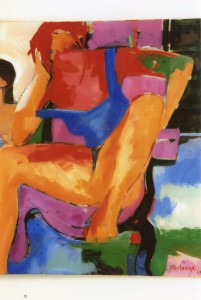 24. Titre-Blue girl in an arab chair. Dim-60×73 cm. Med- Acrylic & oil on canvas.RS 50,000.