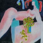 124. Nu au bouquet rouge Acrylic ,oil,felt pen& oil crayon on Canvas 80x80cm